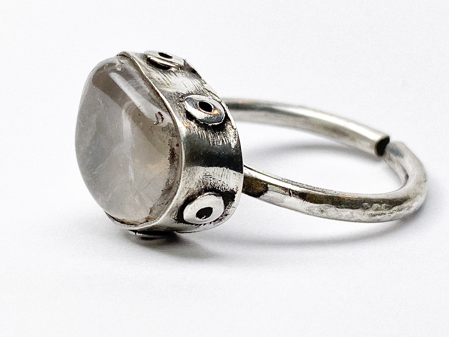 Anillo de plata envejecida con piedra engastada